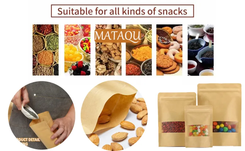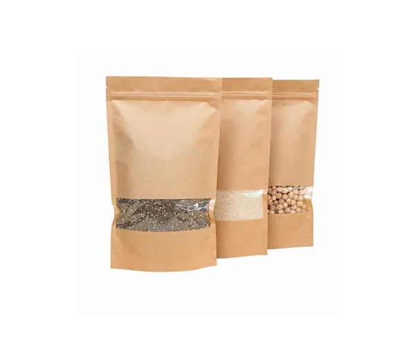 Introducing the Kraft Paper Stand-Up Pouches with Rectangular Windows and Zipper from Pouchdirect Australia, the perfect packaging solution for a wide range of food and non-food items, including co